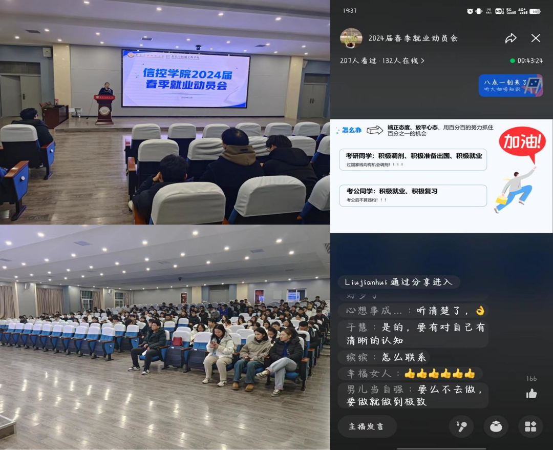 为做好2024届毕业生的就业指导服务工作,引导毕业生树立正确的就业观念,进一步提高我们毕业生就业率和深造率。2月29日晚,Ray竞技官网于学府城6栋301召开毕业生就业动员会。大会特邀请新东方前途出国李晓琛和2021级研究生王志富。2020级本科生辅导员赵莎、李朝,全体2024届本科毕业生参加此次大会,会议面向学生家长全程直播。