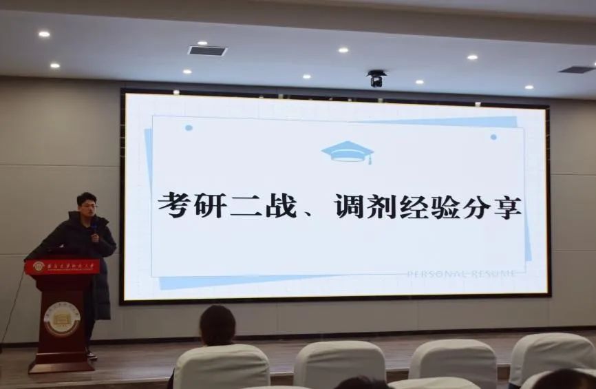王志富从自身经历出发,分享了考研和读研期间的不同感受,考研二战和调剂期间的都有很大的心理压力,鼓励同学们认清形势,找准自身定位,权衡利弊,做出理性选择,选择后将努力发挥到极致。并结合身边案例往年考研和就业同学现状,让大家对当下的选择有了更形象和清晰的认识。