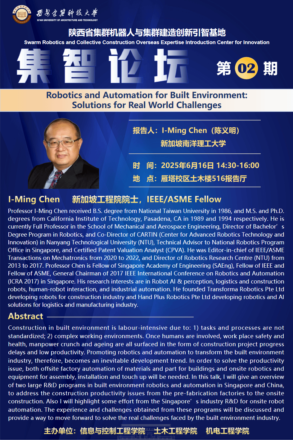 | 名 称: 【集智论坛】第二期:Robotics and Automation for Built Environment: Solutions for Real World Challenges |