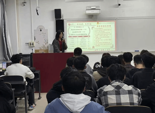 本次分享会特邀24级计算机专业姚艺欣同学作为主讲人,围绕“立学、立身、立行”三大维度,结合自身学习实践经验,为在场同学带来一场极具指导性与启发性的分享。姚艺欣同学通过生动详实的分享,为在场同学提供了切实可行的学习策略,更通过自身榜样力量,激励大家明确学习目标,掌握高效学习方法,为后续的学业提升与晚自习学习奠定坚实基础。