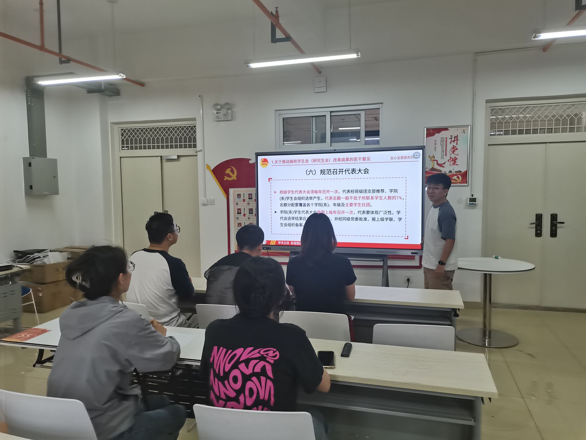 会议集中学习了《关于推动高校学生会(研究生会)深化改革的若干意见》文件,就如何深化学生组织改革展开专题学习。会议指出,学院研究生会作为学院与广大研究生的桥梁纽带,要始终恪守“从同学中来,到同学中去”的工作原则:一是强化服务意识,建立常态化调研机制,定期收集学业发展、生活服务等领域的问题,切实解决广大研究生实际困难;二是提升创新意识,重点孵化具有学科特色的“小而实、小而精”服务项目;三是筑牢纪律意识,严格执行《关于巩固高校学生会(研究生会)改革成果的若干措施》。