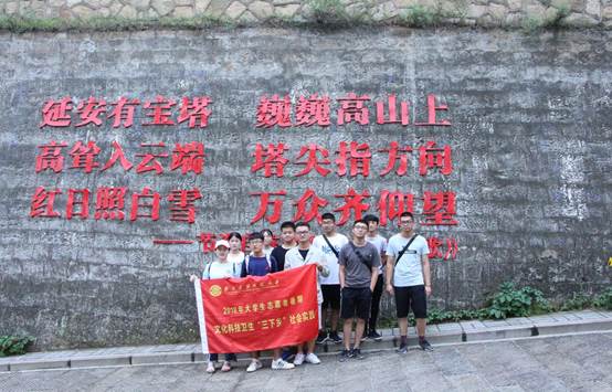 在队长的带领下,队员们开始了行程,初登宝塔,映入眼帘的不是从远处看去一座普通的塔,而是充满的古朴与萧瑟,令人敬畏。往山下望去,延安城景色尽收眼底,旁边旅游团的导游在一旁讲解着宝塔的来历,说到一句“登泰山而一览众山小,登宝塔而一览延安城”将此时场景尽现。塔旁有一洪钟,称明代铁制洪钟,用于革命时期的报时与报警。之后团队继续自己的行程,踩着一层又一层的台阶,路途旁各式各样的树木交替种植,令人仿佛身处于绿色天堂。路边的仿制树洞播放着一首又一首的红歌,熙熙攘攘的人群中有许多穿着红军衣裳的游客,走在路上,就好像置身于革命时代,令人久久难以忘怀。之后队员们登上了摘星楼,领略了一次“高处不胜寒”,下方的少许窑洞,也有着革命时期的影子。队员们穿过丛林小道,参观了嘉岭书院的碑文,登上了烽火台,感受了下古代战争的氛围。队员们在每处都有着合影与留念。