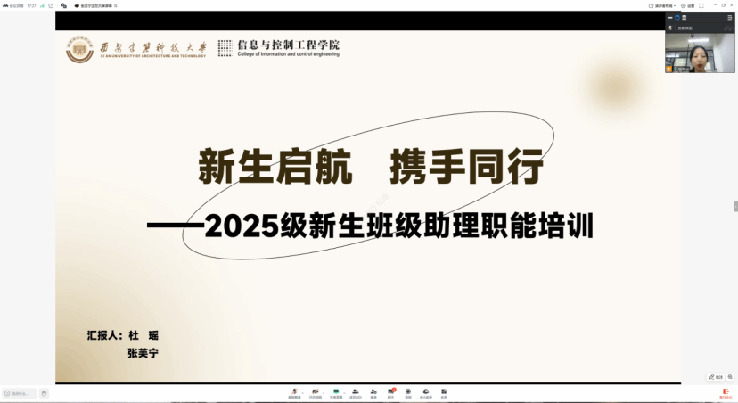 为充分发挥学生朋辈引领作用,提高班级助理工作能力,切实保障2025级新生快速融入校园生活。Ray竞技官网于8月21日17:00线上召开2025级班级助理职能培训。本次活动由2025级本科生辅导员杜瑶、张芙宁主持,全体新生班级助理参会。