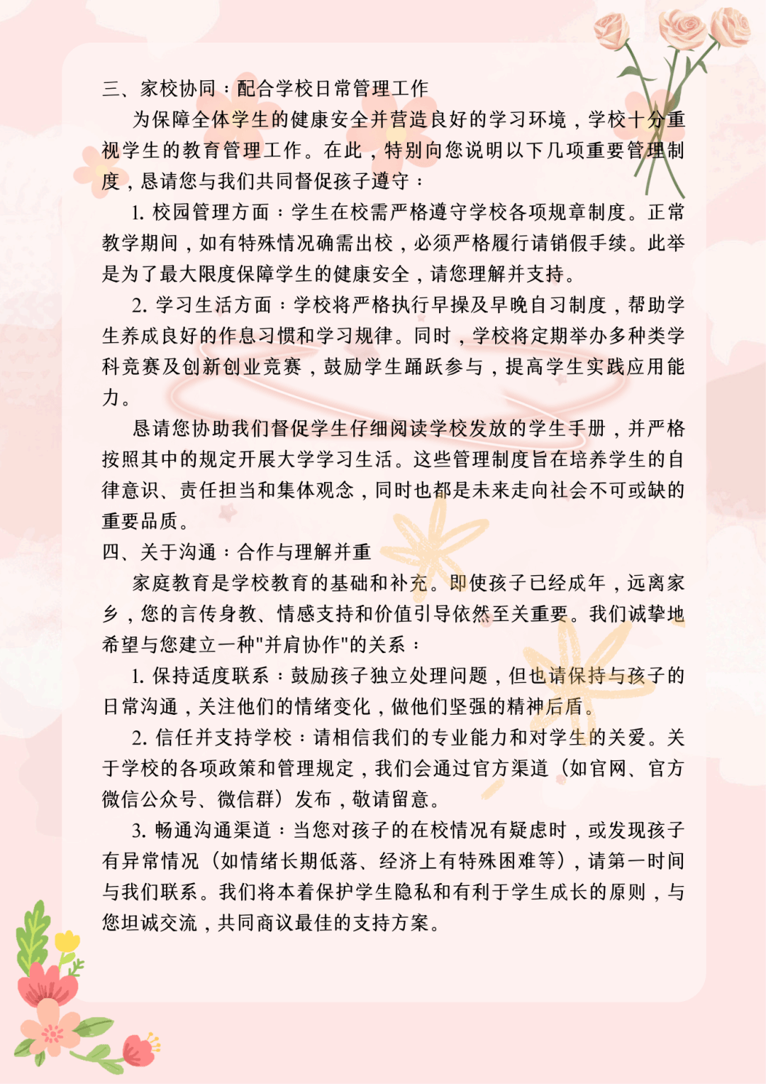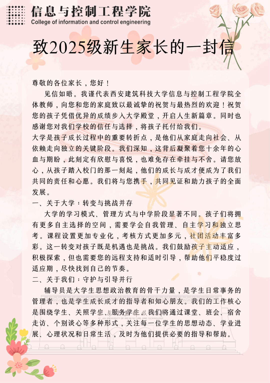 迎“信”特辑⑨丨致2025级新生家长的一封信