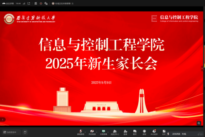 为全面落实立德树人根本任务,深化家校协同育人机制,进一步凝聚育人合力,助力新生尽快适应大学生活,开启成长新征程。我们于9月9日线上召开2025级本科生新生家长会。学院党委副书记、副院长米泽龙,副院长李智杰,学校心理素质拓展与咨询中心王平老师出席会议,2025级本科生辅导员杜瑶主持,近500名新生家长云端参会。