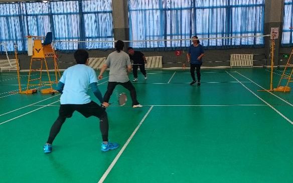 男双赛场,强势对抗,惺惺相惜。作为首个开赛项目,男双赛场的比拼直接点燃全场气氛,堪称“力量与技巧的巅峰较量”。教师队伍在第一局便碰上,通过激烈角逐,魏蕊老师与曾应员老师队冲进四强,在四强对决中,两位老师凭借多年打球积累的经验,控球稳定、战术清晰,每一次回球都精准落在对方场地死角;研究生队的邵志国同学与康锦涛同学则充分发挥年轻的体力优势,跑动速度快、反应敏捷,频繁发起快速反击,面对教师队的紧逼防守,甚至多次扑到场外救球,用尽全力争夺每一分。
