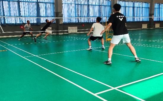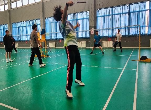 混双赛场,攻防博弈,各展所长。混双比赛的风格虽不如男双激烈,却多了几分默契与灵动。教师队的曾应员老师与耿素花老师搭档,配合十分默契,耿老师网前封网精准果断,曾老师后场控球稳健,总能巧妙化解学生队的进攻;研究生队的采用蔡庸彬同学与田谣同学则以“快、准、狠”为战术核心,女学生反应迅速,多次拦截教师队的网前小球,男学生后场扣杀力道十足,引得场下观众阵阵惊呼。赛后双方握手时,耿老师笑着对学生说:“你们的爆发力和配合都很出色,我们可是捏了把汗才赢下来!” 学生们也表示从教师队身上学到了很多控球技巧,收获满满。
