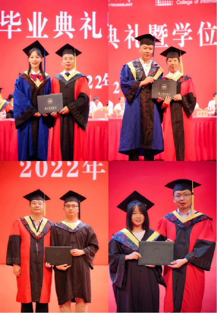 毕业典礼在全体毕业生的合唱《再见,那些年》中落幕。学位授予仪式随即举行。学院学位评定委员会主席、院长马宗方,学院学位评定委员会副主席、副院长王慧琴,学院学位评定委员会委员李昌华、段中兴为毕业生拨穗授位,合影留念。